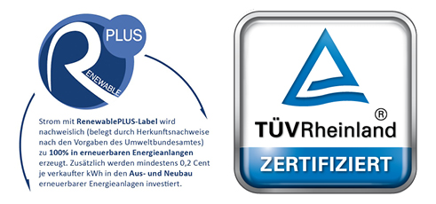 RenewablePLUS ist besonders umweltschonend, denn Emissionen, die bei dem Bau oder dem Betrieb einer Anlage anfallen, werden durch entsprechende Klimaschutzzertifikate ausgeglichen. Diese stammen ausschließlich aus nachhaltigen Projekten des vom TÜV Rheinland zertifizierten Labels ÖkoPLUS. Mit unserem Tarif erhalten Sie also ein Produkt, welches die anspruchsvollen Kriterien von RenewablePLUS erfüllt. Darauf wird es jedes Jahr vom TÜV Rheinland überprüft und zertifiziert. Hier finden Sie die aktuelle TÜV-Zertifizierungsurkunde.